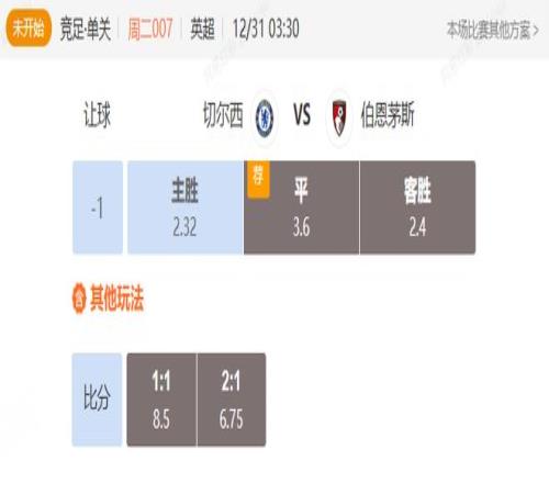 竞足 周二007英超切尔西VS伯恩茅斯